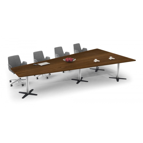 Deskin Konferenztisch DUBLIN, 73,5cm (H), 380x80/197,5cm (BxT), 8 Personen, Trapezform, Nussdekor dunkel / chrom/anthrazit