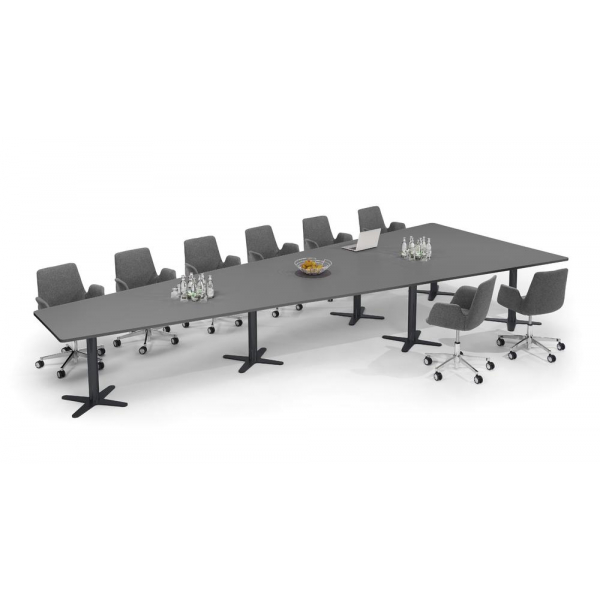 Konferenztisch DUBLIN, 73,5cm (H), 500x80/205cm (BxT), 12 Personen, Trapezform, anthrazit / anthrazit
