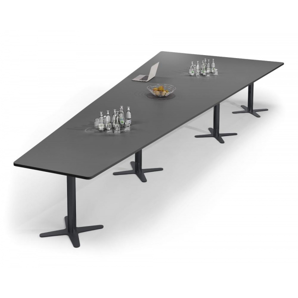 Deskin Konferenztisch DUBLIN, 73,5cm (H), 500x80/205cm (BxT), 12 Personen, Trapezform, anthrazit / anthrazit