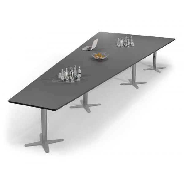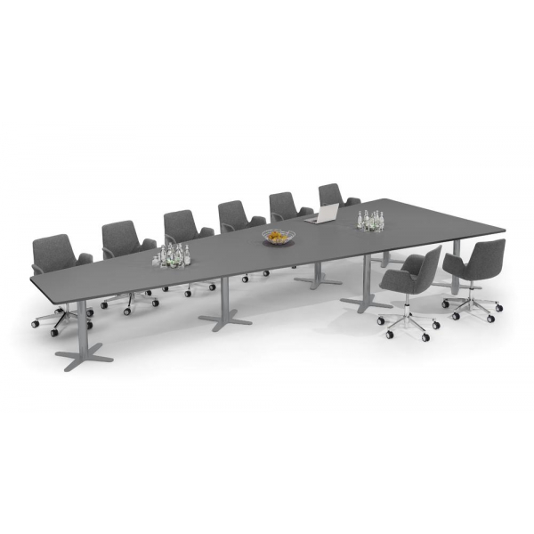 Deskin Konferenztisch DUBLIN, 73,5cm (H), 500x80/205cm (BxT), 12 Personen, Trapezform, anthrazit / silber