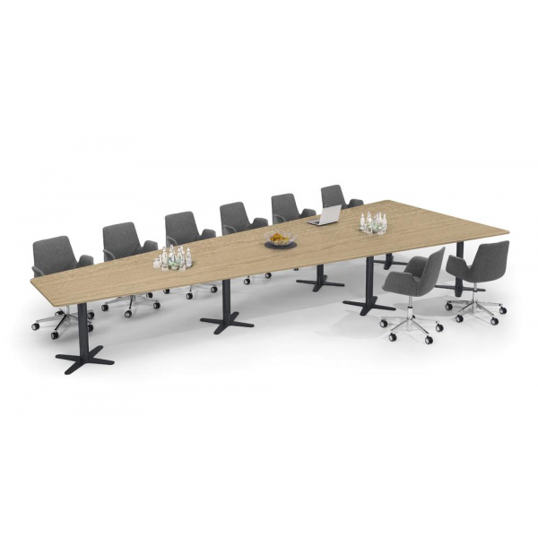 Konferenztisch DUBLIN, 73,5cm (H), 500x80/205cm (BxT), 12 Personen, Trapezform, eiche hell / anthrazit