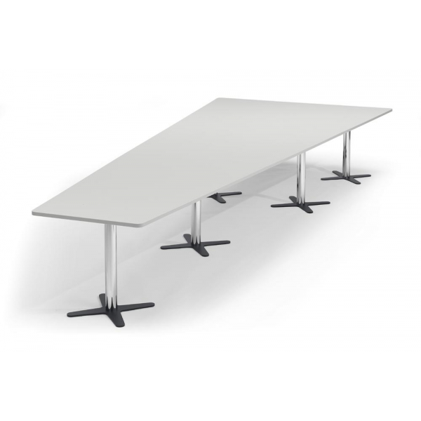 Konferenztisch DUBLIN, 73,5cm (H), 500x80/205cm (BxT), 12 Personen, Trapezform, lichtgrau / chrom/anthrazit