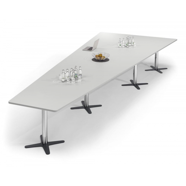 Deskin Konferenztisch DUBLIN, 73,5cm (H), 500x80/205cm (BxT), 12 Personen, Trapezform, lichtgrau / chrom/anthrazit