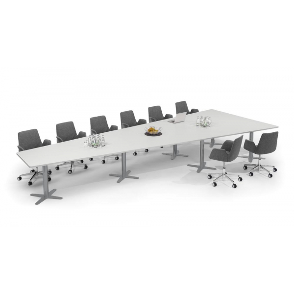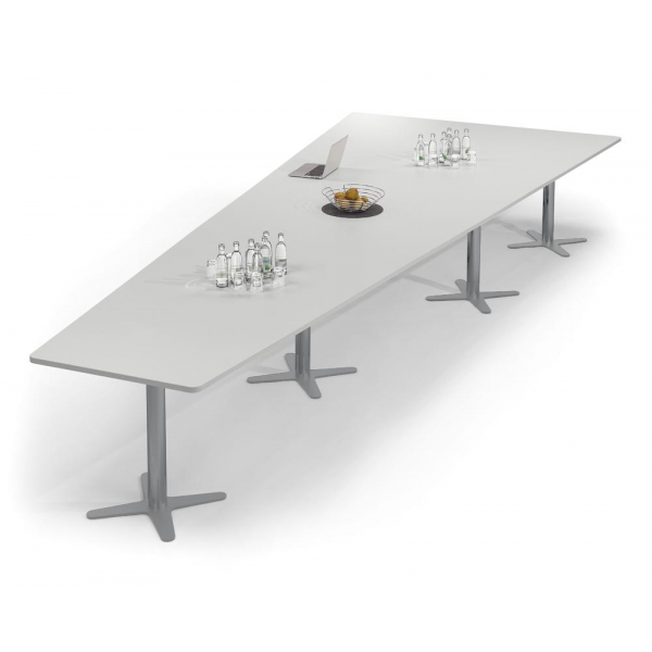 Konferenztisch DUBLIN, 73,5cm (H), 500x80/205cm (BxT), 12 Personen, Trapezform, lichtgrau / silber