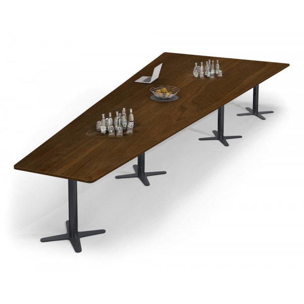 Deskin Konferenztisch DUBLIN, 73,5cm (H), 500x80/205cm (BxT), 12 Personen, Trapezform, Nussdekor dunkel / anthrazit