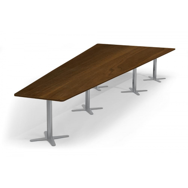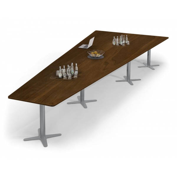 Deskin Konferenztisch DUBLIN, 73,5cm (H), 500x80/205cm (BxT), 12 Personen, Trapezform, Nussdekor dunkel / silber