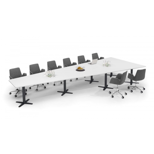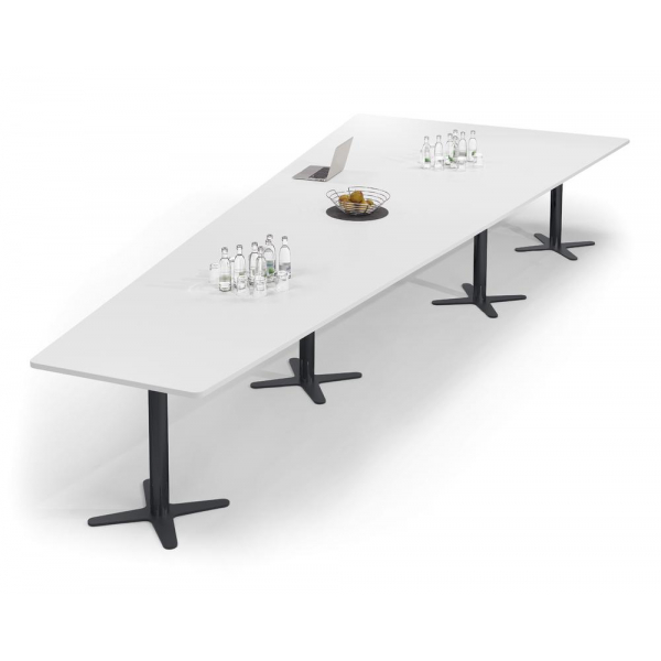 Deskin Konferenztisch DUBLIN, 73,5cm (H), 500x80/205cm (BxT), 12 Personen, Trapezform, weiß / anthrazit