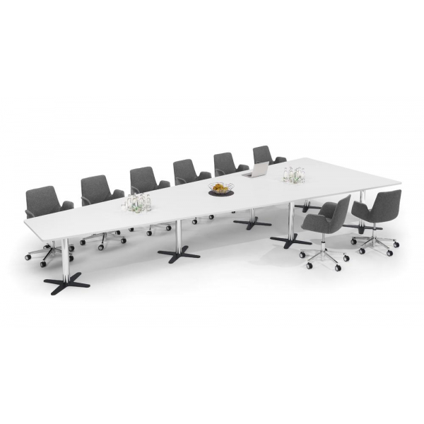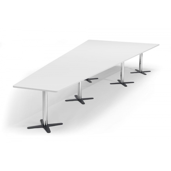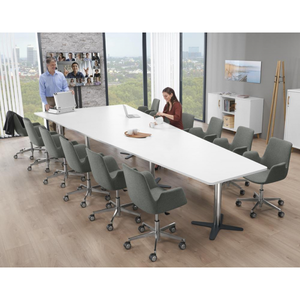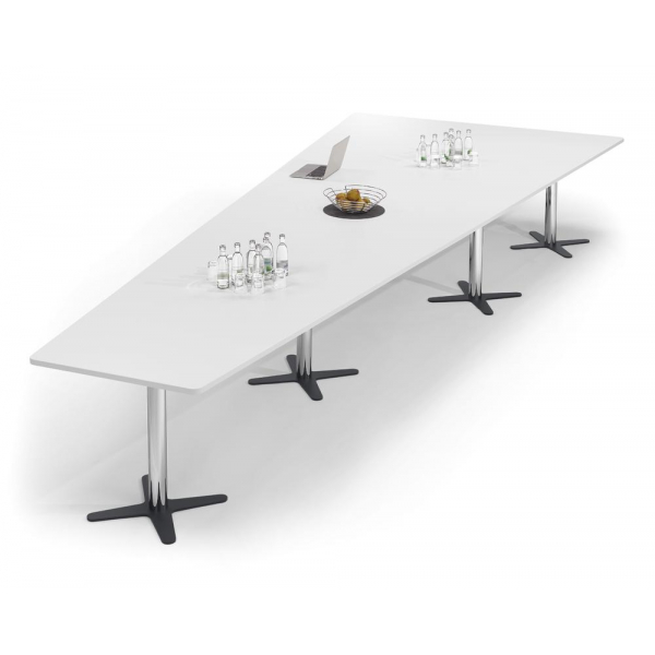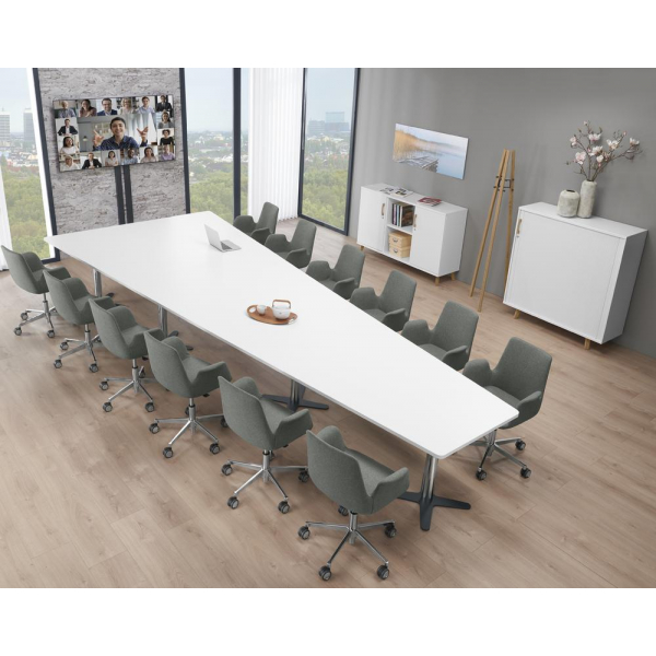 Deskin Konferenztisch DUBLIN, 73,5cm (H), 500x80/205cm (BxT), 12 Personen, Trapezform, weiß / chrom/anthrazit