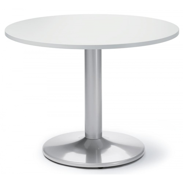 Deskin Konferenztisch MODUL, 73,5cm (H), 100x100cm (BxT), 5 Personen, rund, weiß / alusilber