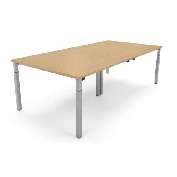 Deskin Konferenztisch System MODUL, höhenverstellbar 65-85cm (H), 240x120cm (BxT), 12 Personen, rechteckig, buche / silber