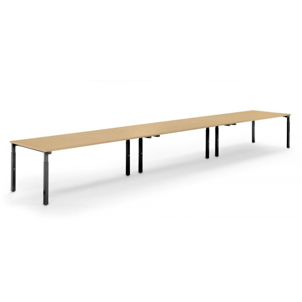 Deskin Konferenztisch System MODUL, höhenverstellbar 65-85cm (H), 600x100cm (BxT), 20 Personen, rechteckig, buche / schwarz
