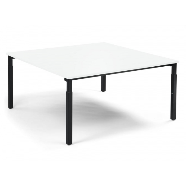 Konferenztisch System MODUL, manuell höhenverstellbar 65-85cm (H), 160x160cm (BxT), 8 Personen, quadratisch, weiß / schwarz