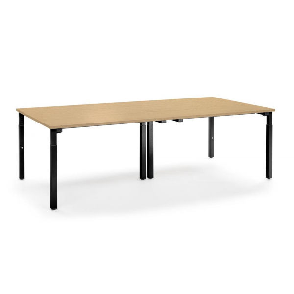 Deskin Konferenztisch System MODUL, manuell höhenverstellbar 65-85cm (H), 240x120cm (BxT), 12 Personen, rechteckig, buche / schwarz