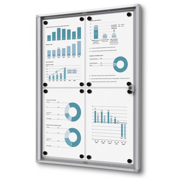 • für: 4xA4 • Maße: 49,1x65,5x2,6cm (BxHxT) • abschließbar • Verglasung: Acrylglas • Rückwand: Stahlrückwand • Gewicht: 2,8kg