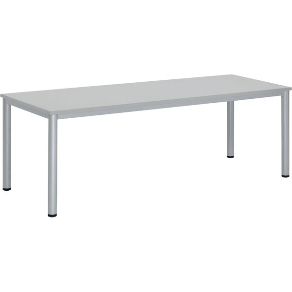 Schreibtisch Deskin BASE-MODUL Q 40259706 • Höhe: 72cm • Platte: grau, 200x80cm (BxT), rechteckig, verkettbar, Spanplatte mit Melaminharzbeschichtung, 25mm • Gestell: silber, 4-Fuß-Gestell, Stahl, pulverbeschichtet • ohne Rollen • Gewicht: 37kg