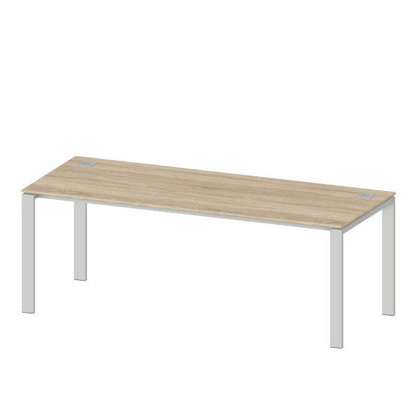 Schreibtisch Deskin Basic EVO 271029 • Höhe: 73cm • Platte: wildeiche, 200x80cm (BxT), rechteckig, Spanplatte mit Melaminharzbeschichtung, 24mm • Gestell: silber, 4-Fuß-Gestell, Stahl, pulverbeschichtet • ohne Rollen • Gewicht: 47kg • Anlieferung: zerlegt