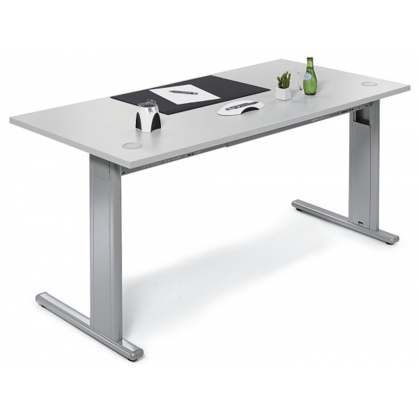 Deskin Schreibtisch Basic M MULTI M, 74cm (H), 120x80cm (BxT), rechteckig, lichtgrau / silber
