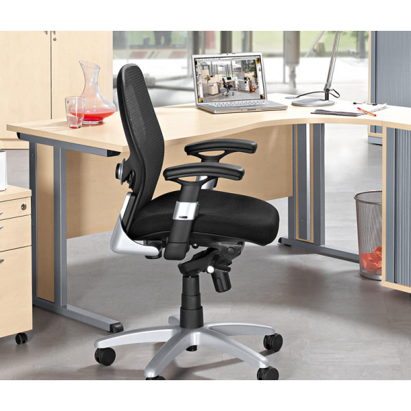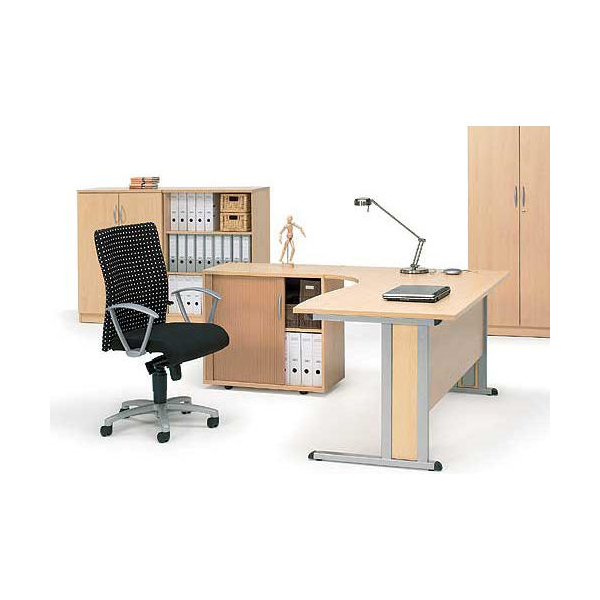 Der Schreibtisch präsentiert sich in einem stilvollen Ahorndekor und einem stabilen Gestell in Alusilber. Die Freiform-Tischplatte passt sich optimal an jede Raumsituation an und verleiht Ihrem Arbeitsbereich eine individuelle Note.