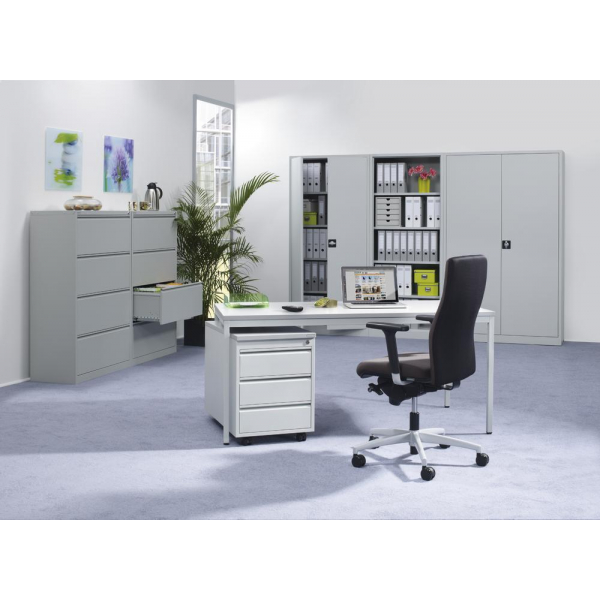Deskin Schreibtisch-Büromöbel-Set BASE L, 72cm (H), 160x80cm (BxT), rechteckig, lichtgrau / lichtgrau