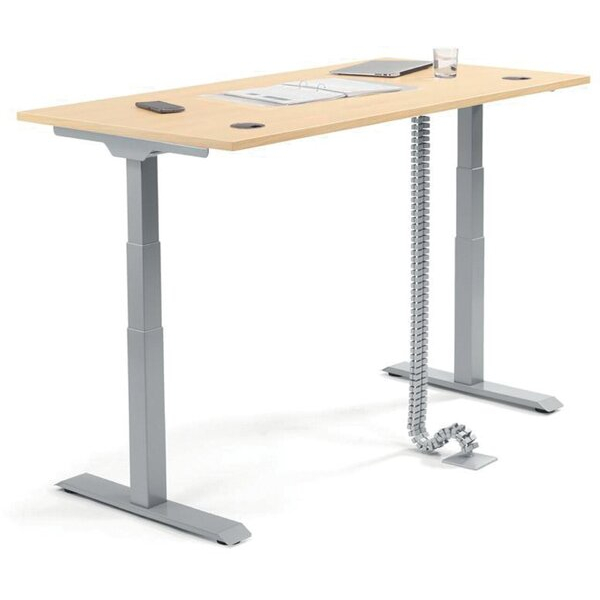 Deskin Schreibtisch FLEX MODUL, elektrisch höhenverstellbar, 60,5-125,5cm (H), 200x80cm (BxT), rechteckig, ahorn / silber