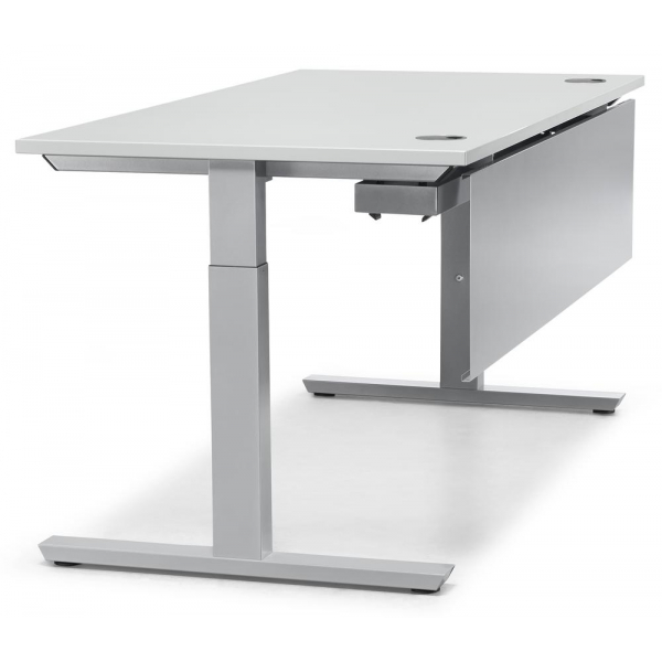 Der Schreibtisch T-Fuß MULTI M pro von Deskin vereint Funktionalität und modernes Design in einem. Mit einer eleganten Dekoration in lichtgrau und einer stabilen 25 mm starken Schreibtischplatte ist dieser Tisch perfekt für jedes Büro oder Homeoffice. Das T-Fuß-Stahlgestell in Alusilber (RAL 9006) sorgt für eine robuste Grundlage, während die stufenlose Höhenverstellung von 65 cm bis 85 cm (H) individuellen Komfort bietet.