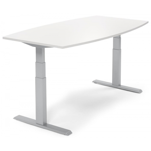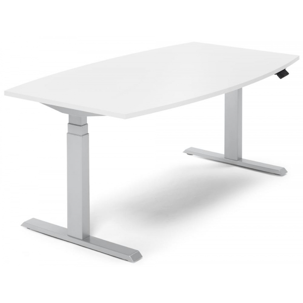 Sitz-Steh-Besprechungstisch, elektrisch höhenverstellbar 64-130cm (H), 200x100cm (BxT), 8 Personen, Tonnenform, weiß / silber