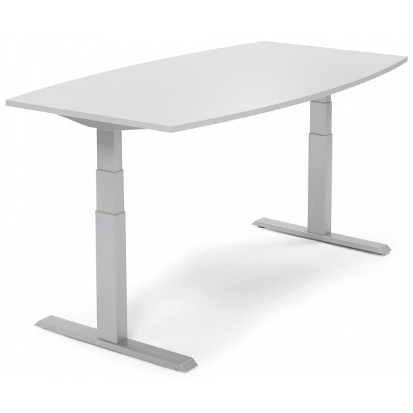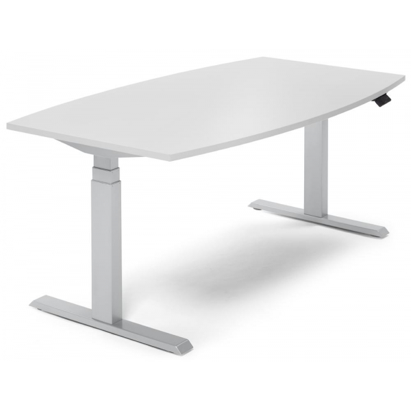 Sitz-Steh-Besprechungstisch, elektrisch höhenverstellbar 64-130cm (H), 200x100cm (BxT), 8 Personen, Tonnenform, lichtgrau / silb