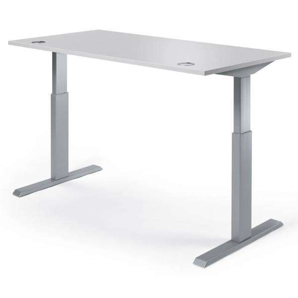 Die 25 mm dicke Tischplatte ist mit zwei Kabeldurchlässen ausgestattet, um eine saubere Kabelführung zu gewährleisten. Das stabile T-Fuß-Gestell aus pulverbeschichtetem Stahl in Alusilber RAL 9006 bietet Ihnen die nötige Stabilität und Sicherheit. Mit zwei leistungsstarken Elektromotoren ist der Tisch elektrisch höhenverstellbar, wodurch Sie ganz einfach zwischen sitzen und stehen wechseln können, um Ihre Ergonomie zu verbessern.