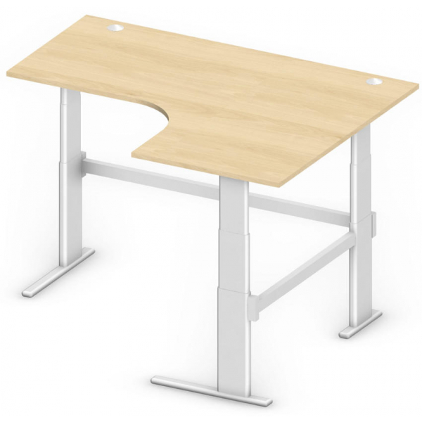 elektrisch höhenverstellbarer Sitz-Steh-Schreibtisch Deskin Comfort MULTI M 275372 • für ergonomisches Arbeiten • Höhe: 65,5-130,5cm • Platte: buche, 180x140cm (BxT), L-Form (= Eckschreibtisch), rechts montierbar, Spanplatte mit Melaminharzbeschichtung, 25mm • Gestell: silber, C-Fuß-Gestell, Stahl, pulverbeschichtet • ohne Rollen • Tragfähigkeit: bis 80kg • Gewicht: 80kg • Anlieferung: zerlegt