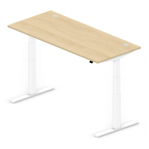 Die Tischplatte aus hochwertiger Spanplatte mit Melaminharzbeschichtung in ansprechendem Buchedekor ist nicht nur robust, sondern auch pflegeleicht. Das T-Fuß-Gestell in Weiß (RAL 9016) sorgt für Stabilität und verleiht dem Schreibtisch ein elegantes Erscheinungsbild. Ausgestattet ist der Schreibtisch mit zwei Elektromotoren, die eine sanfte und zuverlässige Höhenverstellung ermöglichen. Der integrierte Memory-Handschalter speichert Ihre bevorzugten Höhen und ermöglicht einen einfachen Wechsel zwischen sitzender und stehender Arbeitsposition.