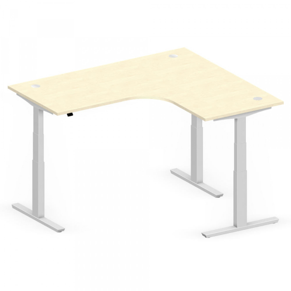 Deskin Sitz-Steh-Schreibtisch Jumbo Multi M, elektrisch höhenverstellbar, 65-130cm (H), 180x160cm (BxT), L-Form, ahorn / silber