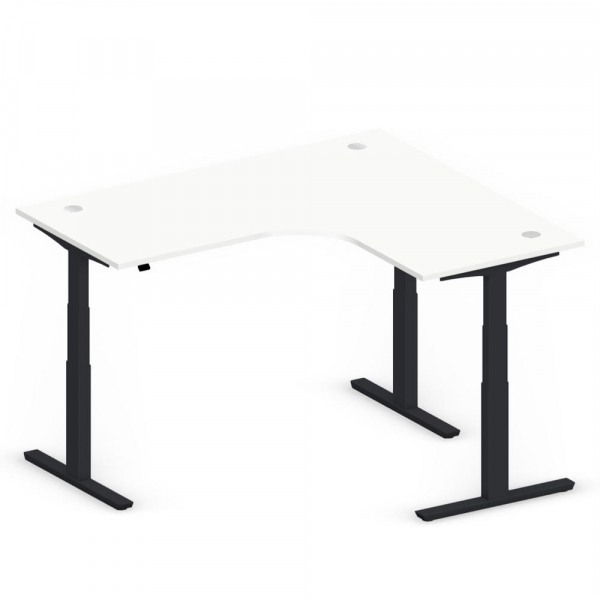 Deskin Sitz-Steh-Schreibtisch Jumbo Multi M, elektrisch höhenverstellbar, 65-130cm (H), 180x160cm (BxT), L-Form, weiß / schwarz
