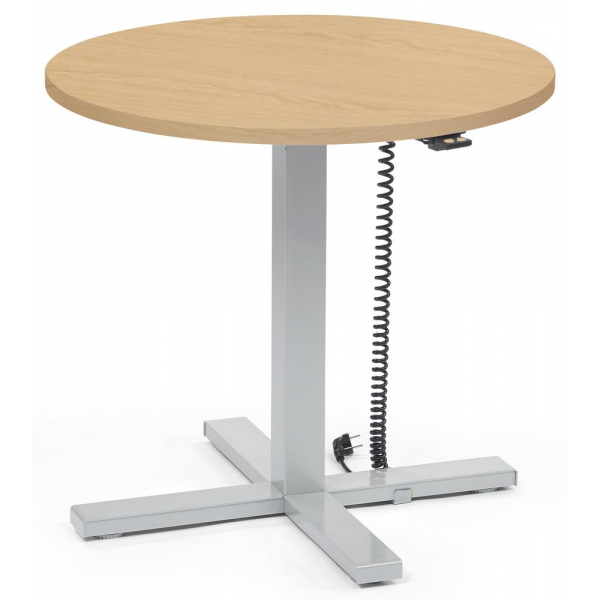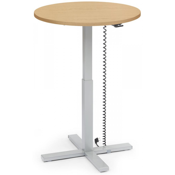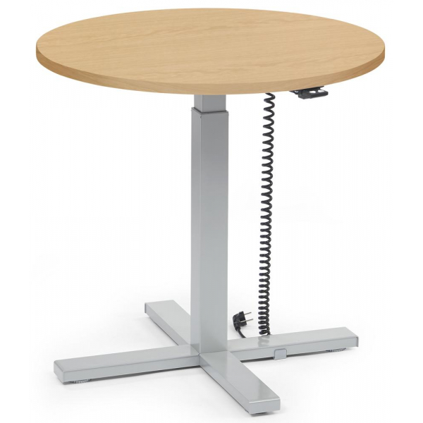 Deskin Sitz-Steh-Schreibtisch MODUL Monosäule, elektrisch höhenverstellbar, 71,5-120,5cm (H), 80x80cm (BxT), rund, buche / silber