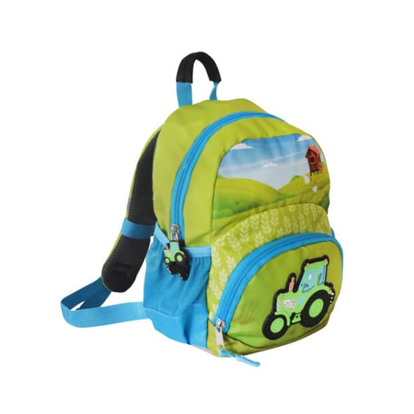 Zipphauptfach mit separatem Innenfach und Namens/Adressfeld, Zippvortasche mit Reflektor, weich gepolsterer Rücken und Schultergurte, 2 Stoff-/Netzseitenfächer, höhenverstellbarer Brustgurt, beschichteter Boden zum Schutz vor Nässe und Schmutz