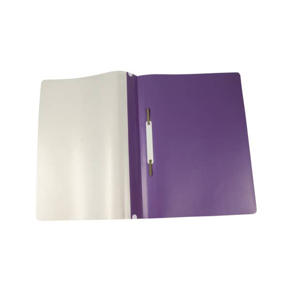 Der Vorderdeckel des Schnellheters ist transparent und genarbt, was nicht nur für eine ansprechende Optik sorgt, sondern auch dafür, dass Ihre Unterlagen sicher und gut sichtbar aufbewahrt werden. Der farbige Rückendeckel in einem attraktiven Violett macht den Schnellhefter zu einem echten Hingucker in jedem Büro oder zu Hause.