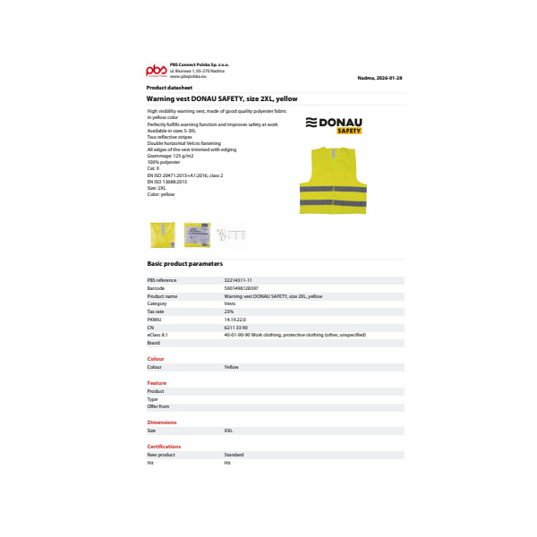 Warnweste Polyester Gr.112XL gelb 5901498128397 Donau 32214311-11