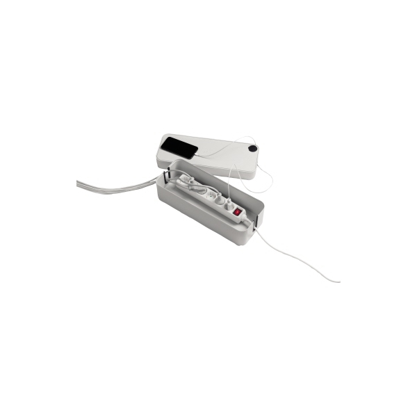 Die Kabelbox besteht aus robustem Kunststoff und ist in einem eleganten Grau gehalten, das sich nahtlos in jede Umgebung einfügt. Dank des durchdachten Designs können Sie Ihre Geräte ordentlich verstauen und gleichzeitig den Zugang zu den Anschlüssen erleichtern.