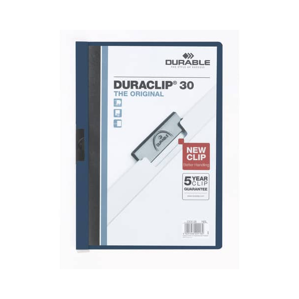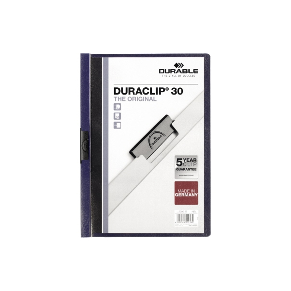 Der Klemmhefter DURACLIP 30 von Durable ist die ideale Lösung für die sichere Aufbewahrung Ihrer wichtigen Dokumente. Mit einem praktischen Format von A4 und einem eleganten, blauen Design, vereint dieser Klemmhefter Funktionalität und Stil.