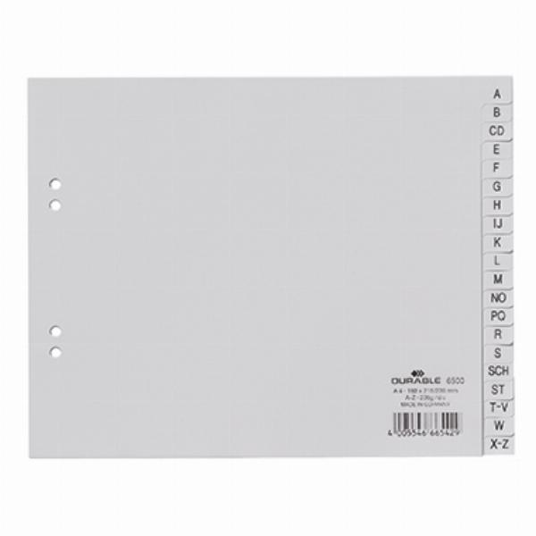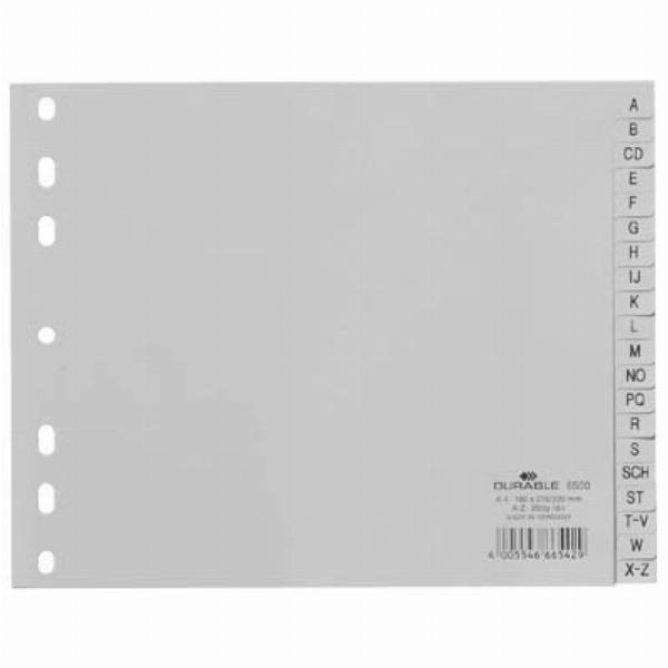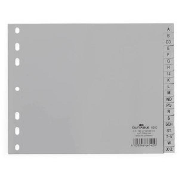 Durable Kunststoffregister 650010, A bis Z, A4 halbe Höhe, 120µm, graue Taben, 20-teilig