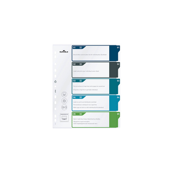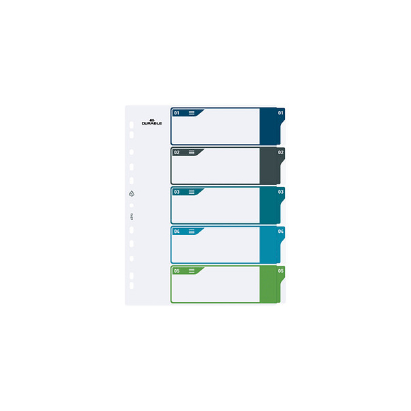 Durable Kunststoffregister 679327, 5-teilig, A4+, farbig sortiert, 5-teilig