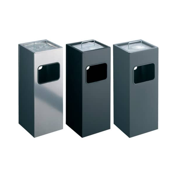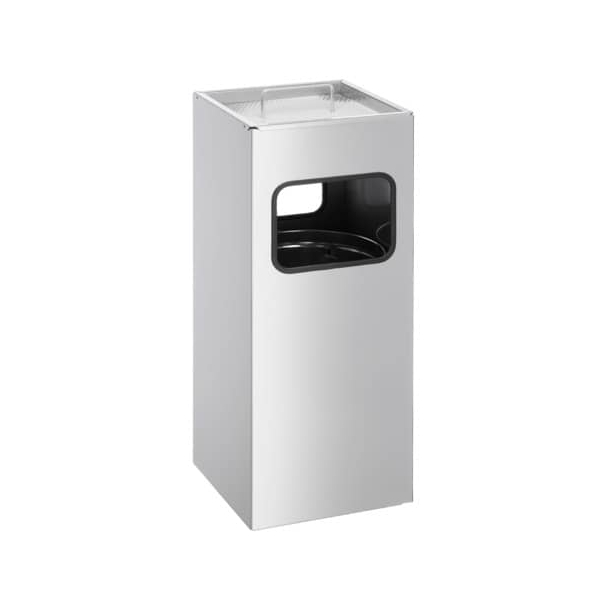 mit 2 Einwurföffnungen für Papier, für den Einsatz im Innen- oder geschützten Außenbereich, herausnehmbarer innerer Behälter und Ascher für leichte Leerung und Reinigung.Volumen Ascher: 2 l