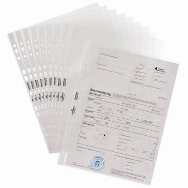 Die Prospekthüllen sind nicht nur dokumentenecht, sondern verfügen auch über eine verstärkte Lochrandverstärkung, die ein einfaches Abheften ermöglicht. Die oben offene Ausführung und die Universallochung machen sie äußerst vielseitig und benutzerfreundlich.