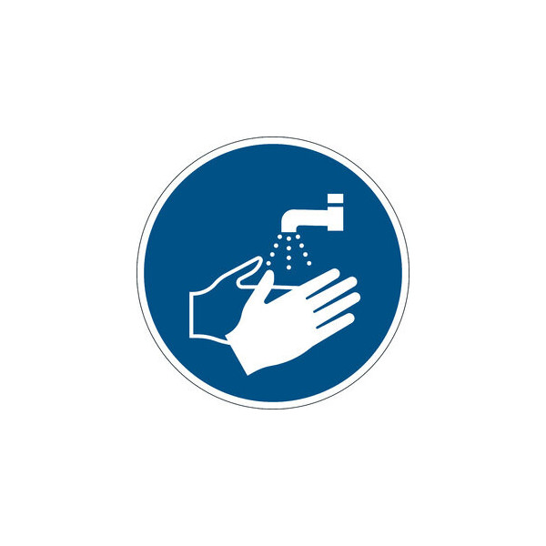 Durable Schild, M011 - Hände waschen, sk, ablösbar, rund, Ø: 430 mm, blau