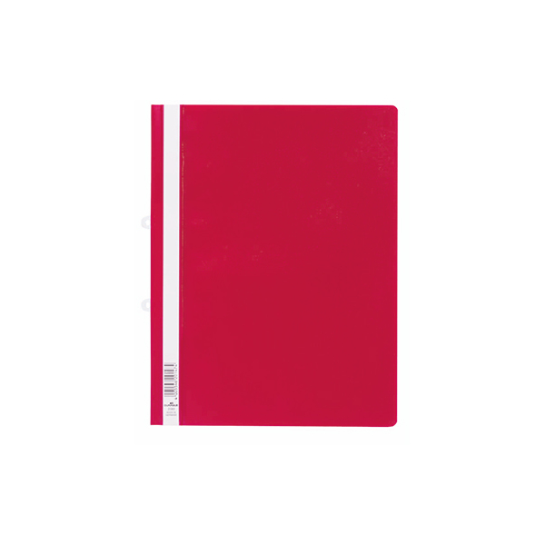 Durable 258003 Schnellhefter • Format: DIN A4+ • Farbe: rot • Vorderdeckel: transparent (= Sichthefter) • mit Beschriftungsfeld • Material: Kunststoff 80 g/m² • Heftung: 1 x kaufmännische Heftung • Fassungsvermögen ca.: 200 Blatt