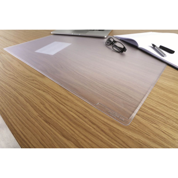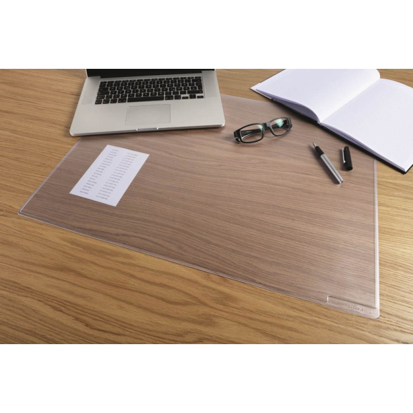 Die Schreibunterlage hat die Maße 65x50cm und ist aus hochwertigem PVC gefertigt. Dank der transparenten Optik fügt sie sich nahtlos in jede Büroumgebung ein. Mit einer Stärke von nur 1mm bleibt Ihr Arbeitsplatz stets aufgeräumt und bietet gleichzeitig einen optimalen Schutz für Ihre Unterlagen.