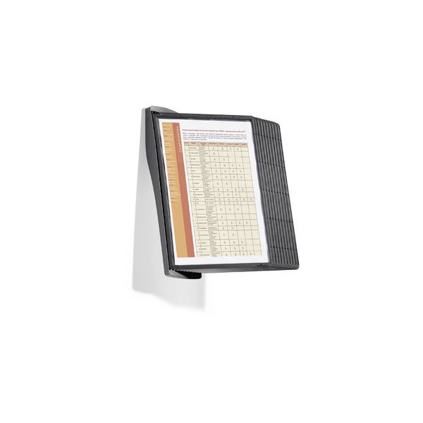 DURABLE präsentiert das Sichtafelsystem A4 StyleWall in elegantem Schwarz mit 10 Tafeln Sherpa. Dieses hochwertige Produkt ermöglicht Ihnen eine effiziente Organisation und ein einfaches Einsehen Ihrer Dokumente wie Angebote, Arbeitsanweisungen, Telefon- und Preislisten.