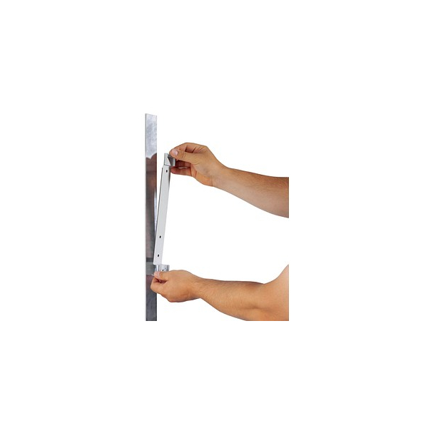 | Wandhalter aus Metall mit magnetischer Rückseite, kann schnell und einfach an metallischen Untergründen wie Regalen oder Maschinen befestigt werden, mit 10 SHERPA® Sichttafeln im Format A4 | |