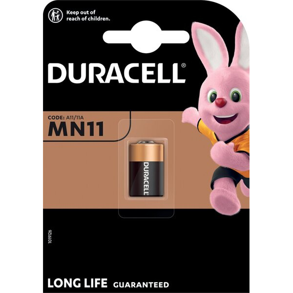 Duracell MN11 015142 Batterie. • Batterietyp: MN11 (Fotobatterie / V11A) • Spannung: 6 Volt • Kapazität: 38 mAh • Batteriesystem: Alkali-Mangan