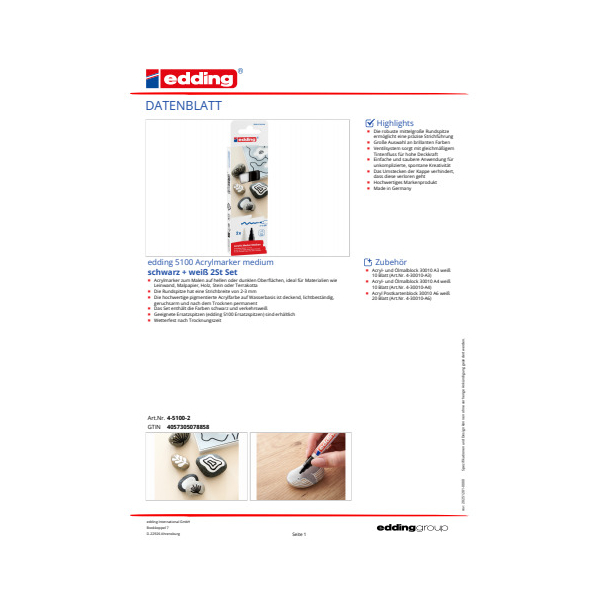 zum Datenblatt| Edding Edding in Acrylstifte / Acrylmarker anzeigen | |