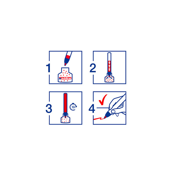 Mit einer Schreibfarbe in intensivem rot eignet sich die Tinte perfekt für klare und auffällige Beschriftungen auf Whiteboards. Sie ist für die Nachfüllung der edding Marker 250, 360, 361 und 363 sowie die comfort 2-Modelle geeignet.